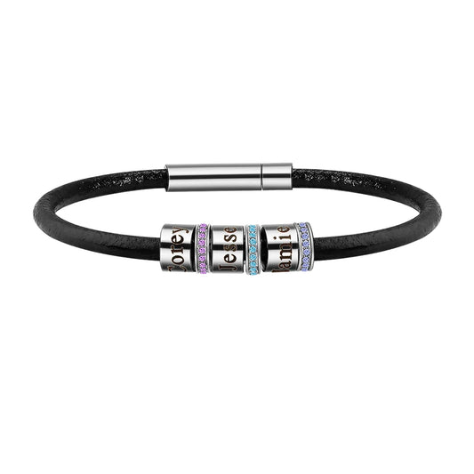 Personalized Name beads Bracelet Custom Name birsthstone Bracelet Leather Bracelet Jewelry Gift Valentine's Day Gift